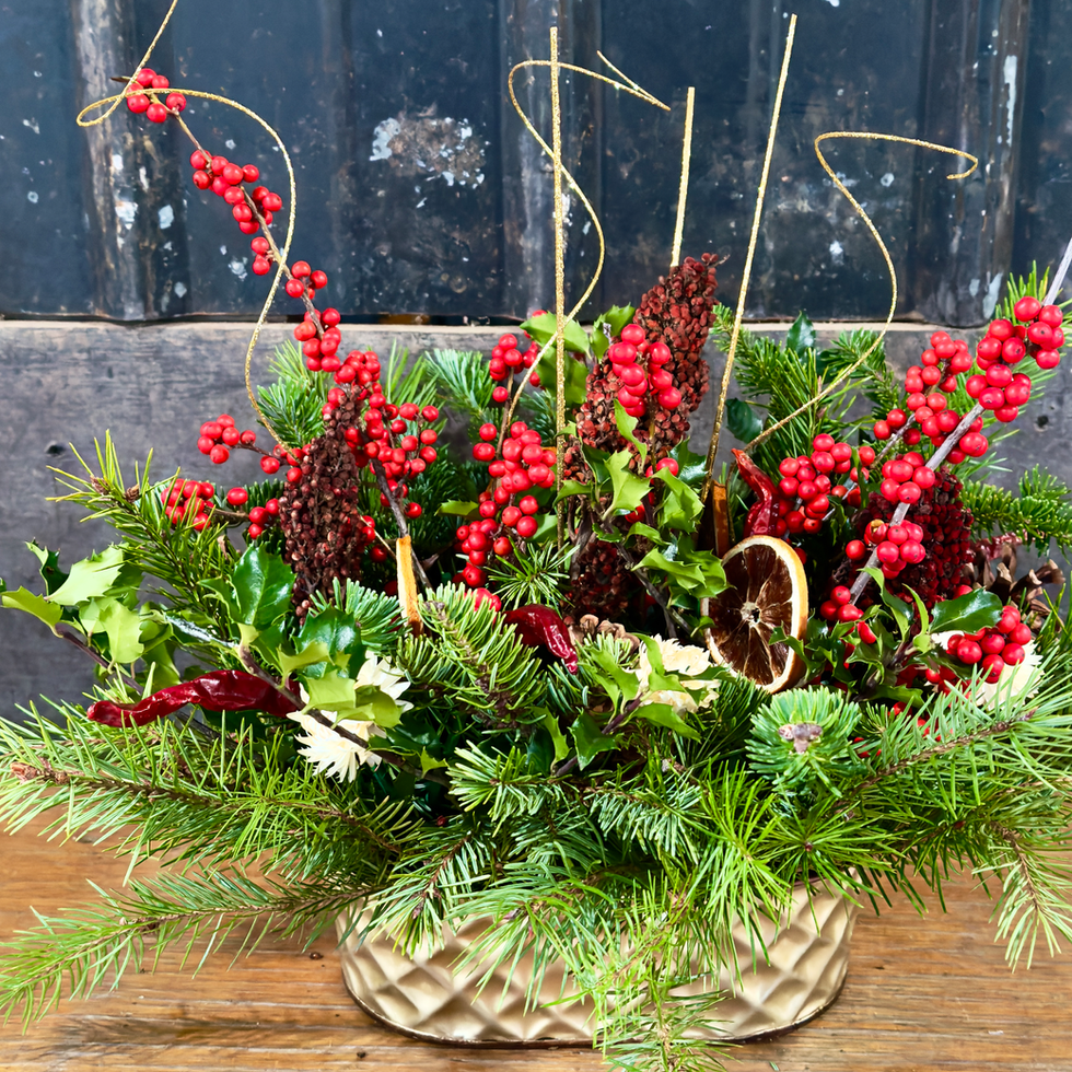 Please note: Each centerpiece is unique and may look different from the one in the picture, but will stay in the traditional Christmas color schemes pictured.